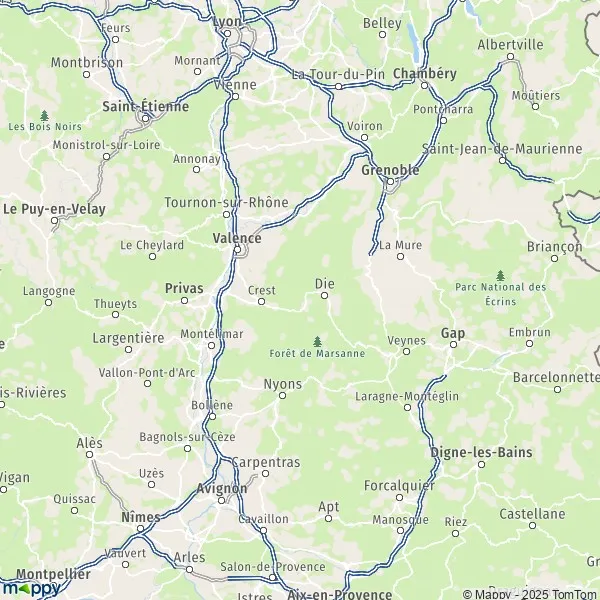 Affichez sur la carte les pistes cyclables dans le département Drôme.