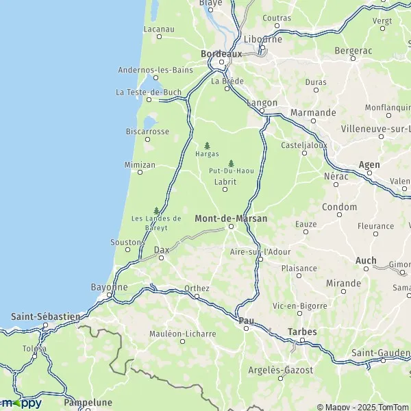 Affichez sur la carte les pistes cyclables dans le département Landes.