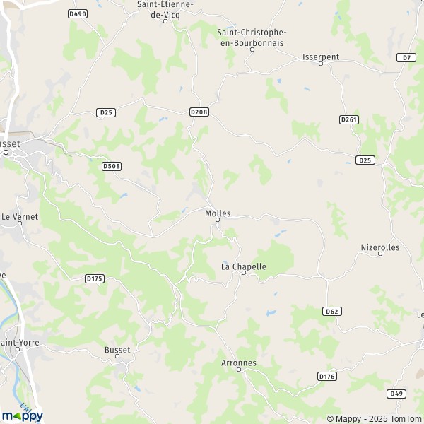 Molles est une ville située dans le département de l'Allier en région Auvergne-Rhône-Alpes (anciennement région Auvergne). Cette commune de l’aire urbaine de Vichy compte 868 habitants se nommant les Mollois et Molloises. Parmi les communes limitrophes, on retrouve Saint-Étienne-de-Vicq à 8 km et Cussel à 9 km.