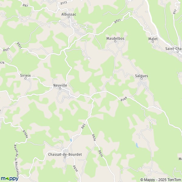 Neuville fait partie du département de la Corrèze et de la région Nouvelle Aquitaine (anciennement région du Limousin). Entourée par les communes d'Albussac, Saint-Hilaire-Taurieux et Ménoire, ce petit village de 197 habitants se situe à moins de vingt kilomètres au sud-est de Tulle, la plus grande villes des environs.
