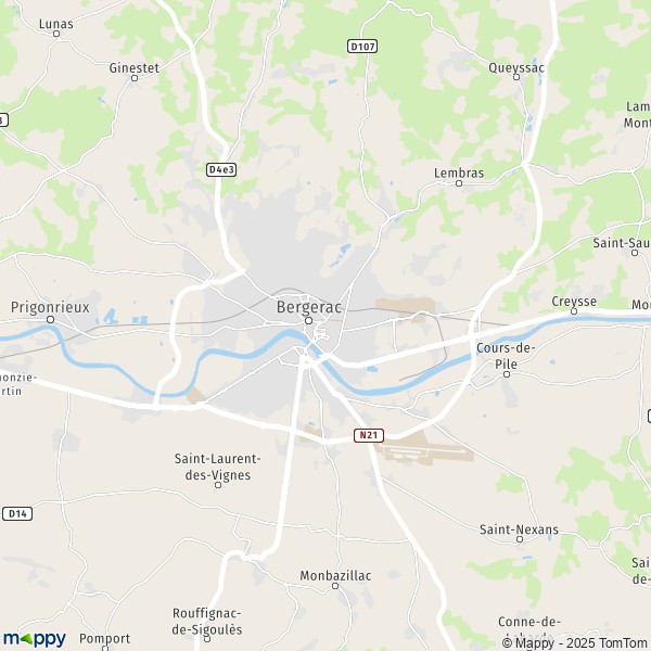 Bergerac est une ville française située dans le département de la Dordogne. En 2014, elle comptait 27 764 habitants. La commune a un patrimoine historique riche. Ses ruelles bordées de maisons à colombages, ses parcs et jardins à l'anglaise, ses abbayes romanes et gothiques ou ses grottes naturelles, lui confèrent un intérêt touristique important. La ville est également célèbre pour ses vins. Le Monbazillac est l'un des plus célèbres. Elle compte 12 600 hectares de vignes pour 13 appellations d'origine contrôlée. Bergerac accueille d'ailleurs la Maison des vins, qui propose un itinéraire de découverte du breuvage par l'intermédiaire d'expositions et de dégustations. La ville propose également aux visiteurs le Musée d'Intérêt National du Tabac, un musée qui retrace l'évolution de l'utilisation de la plante, de son origine amérindienne jusqu'à aujourd'hui. Enfin la ville est célèbre parce qu'associée au nom de Cyrano de Bergerac. Cependant, le personnage d'Edmond Rostand, auteur de la pièce, n'a historiquement pas de lien avec la ville. Hercule Savinien de Cyrano, de son vrai nom, ajouta à son nom Bergerac en référence à une ancienne possession familiale proche de Paris.