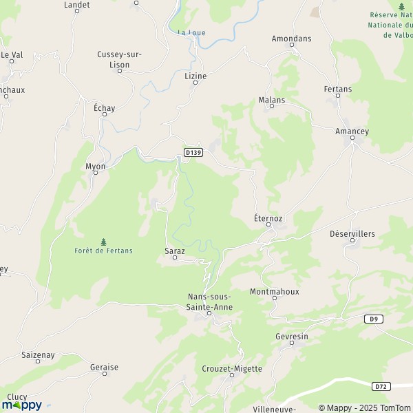 Plan Éternoz-Vallée-du-Lison : carte de Éternoz-Vallée-du-Lison (25330) et infos pratiques