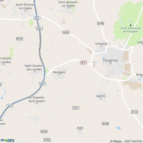 - Distance Romagné Fougères