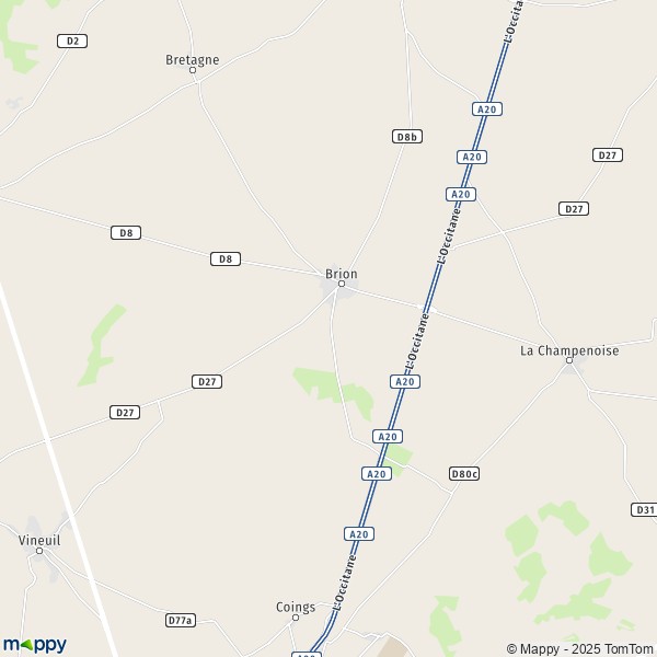 Brion est un petit village rural situé dans le département de l'Indre, dans la région Centre-Val-de-Loire. La commune présente une très faible densité de population avec 530 habitants sur près de 45 km2. La ville de Châteauroux est à une vingtaine de kilomètres.