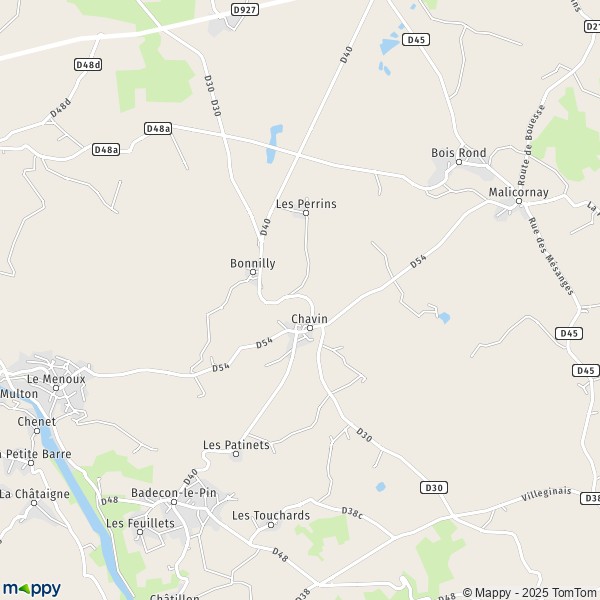 Chavin fait partie du département de l'Indre et de la région du Centre-Val-de-Loire. Ses habitants sont appelés les Chavinois et les Chavinoises. Entouré par les communes de Badecon-le-Pin, Malicornay et Pommiers, ce petit village se trouve à moins de trente kilomètres au sud-ouest de Châteauroux.