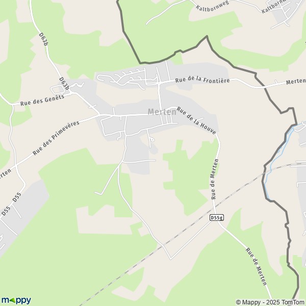 Limitrophe de la Sarre allemande, à cent mètres à peine de la frontière, Merten se situe dans le département de la Moselle. Le nom de la localité dériverait de celui de Rosmerta, une déesse gallo-romaine de la fertilité et de l'abondance. Tous les ans à la période de Noël, une impressionnante crèche attire de nombreux touristes dans la commune.