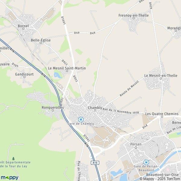 Chambly est une commune de l'Oise dont la population s'élève désormais à 9 926 habitants. Sa situation géographique, à la limite du Val-d'Oise, lui vaut d'être connue sous le qualificatif de « Portes de l'Oise ». L'autoroute A16, qui relie Paris au Nord du pays passe en effet par Chambly, une des plus anciennes villes de France.