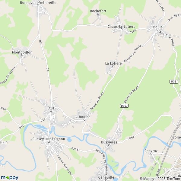 Située à 15km de Besançon, la commune de Boulot se trouve dans le département de Haute-Saône en Bourgogne-Franche-Comté. Le village compte 658 habitants sur une superficie totale de 7,08km. Le village est traversé par le ruisseau de la Tournolle, lui même, sous affluent du Rhône.