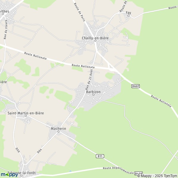 Barbizon fait partie du département de Seine-et-Marne et de la région Ile-de-France. Entouré par les communes de Saint-Martin-en-Brière et de Fontainebleau, ce village se trouve à moins de dix kilomètres de Dammarie-les-Lys. Ses habitants sont appelés les Barbizonnais et les Barbizonnaises.Barbizon est un des endroits mythiques de la peinture pré-impressionniste en France. Dès 1830, ce qui est encore un hameau de bûcherons accueillera en effet à l'auberge Ganne, tous les peintres qui viennent chercher l'inspiration auprès de la nature intacte. Plus tard, ils partagent leurs séjours entre Barbizon et Chailly-en-Bière, trouvant leurs sujets dans la campagne ou la forêt de Fontainebleau toute proche, peignant sur le motif.