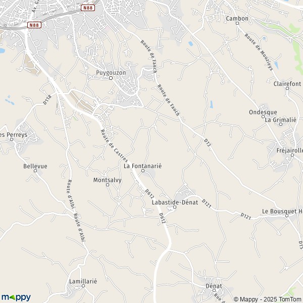 La carte pour la ville de Puygouzon 81120-81990