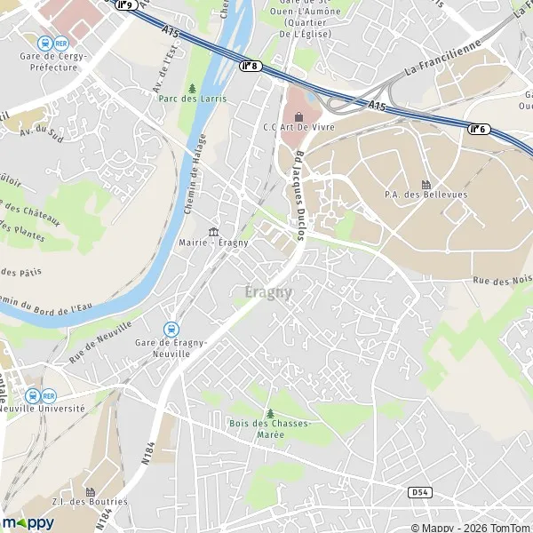 Eragny est une commune du val d’Oise en région Ile de France. La commune compte 16 496 habitants se nommant les Éragniens et les Éragniennes. Eragny se trouve sur la rive de l’Oise à près de 30km de Paris. La ville s’est transformée à la fin des années 60 avec le développement du pôle urbain de Cergy Pontoise.