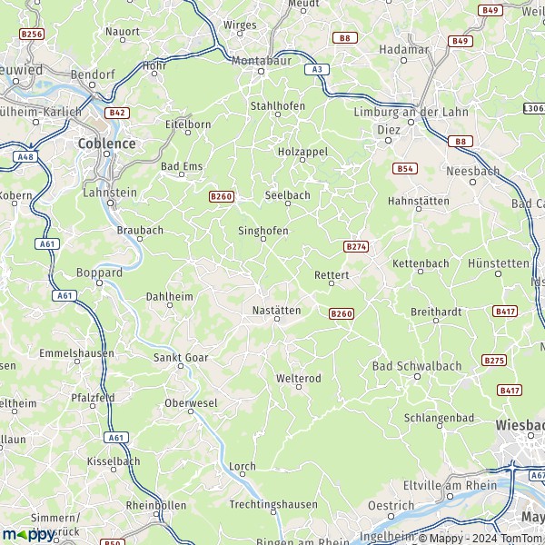 Carte Rhein-Lahn-Kreis : plan de Rhein-Lahn-Kreis et infos pratiques - Mappy