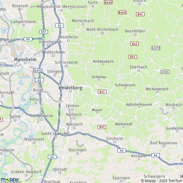 Carte Rhein-Neckar-Kreis : plan de Rhein-Neckar-Kreis et infos pratiques - Mappy