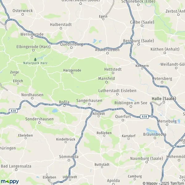 Carte Mansfeld-Südharz : plan de Mansfeld-Südharz et infos pratiques - Mappy
