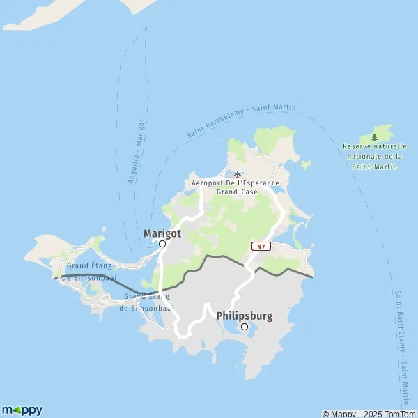 Les départements limitrophes du département Saint-Martin