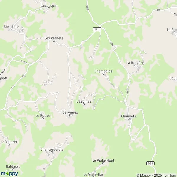 Plan Servières : carte de Servières, 48000 Monts-de-Randon et infos pratiques