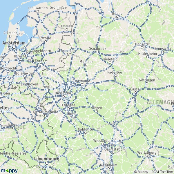Carte Rhénanie-du-Nord-Westphalie : plan de Rhénanie-du-Nord-Westphalie et infos pratiques - Mappy