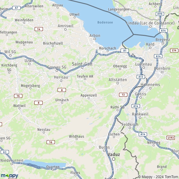 Carte Appenzell Rhodes-Extérieures : plan de Appenzell Rhodes-Extérieures et infos pratiques - Mappy