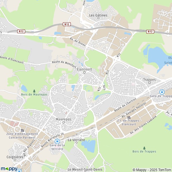 Sur la carte vous pouvez aussi afficher : Pistes cyclables Élancourt