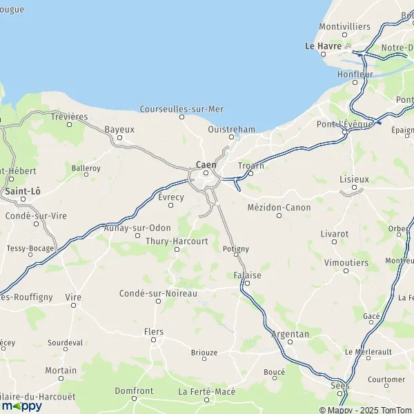 Sur la carte vous pouvez aussi afficher : Info trafic CalvadosPistes cyclables Calvadosles ZFE Calvados