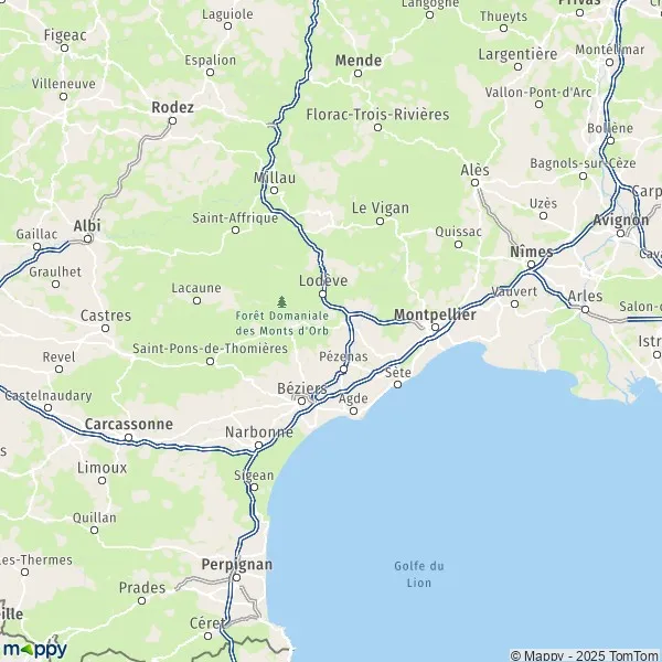 Sur la carte vous pouvez aussi afficher : Info trafic HéraultPistes cyclables Héraultles ZFE Hérault