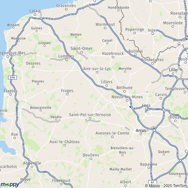 Sur la carte vous pouvez aussi afficher : Info trafic Pas-de-CalaisPistes cyclables Pas-de-Calaisles ZFE Pas-de-Calais
