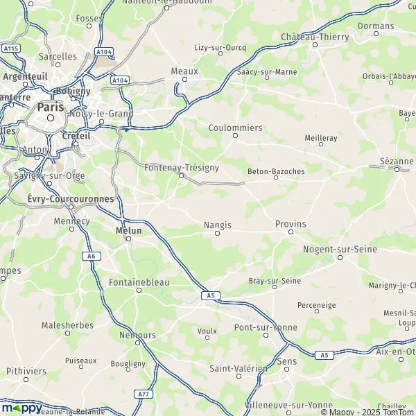 Sur la carte vous pouvez aussi afficher : Info trafic Seine-et-MarnePistes cyclables Seine-et-Marneles ZFE Seine-et-Marne