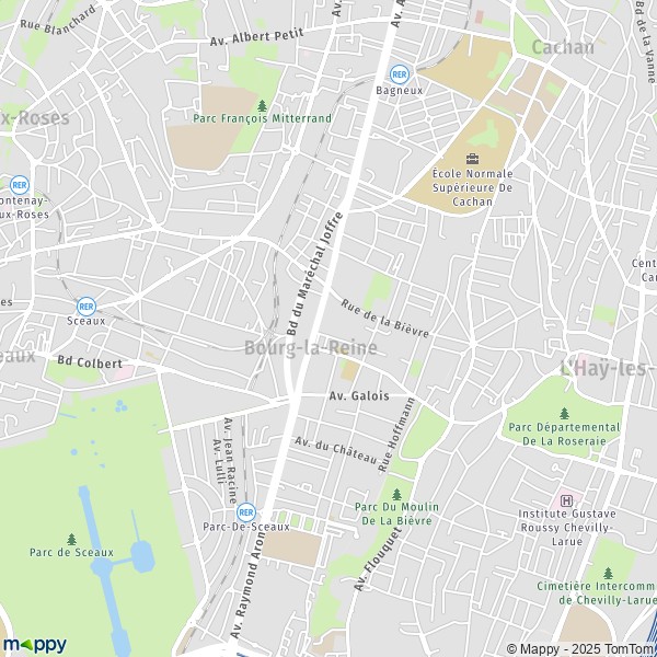 Sur la carte vous pouvez aussi afficher : Pistes cyclables Bourg-la-Reine